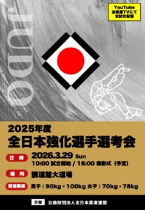全日本強化選手選考会2026(2026.3.29)2026年3月29日 男子 90kg級 100kg級 女子 70kg級 78kg級 2026年,Result,更新,高校生,高校選手権Posted by 柔道ニュースまとめ
